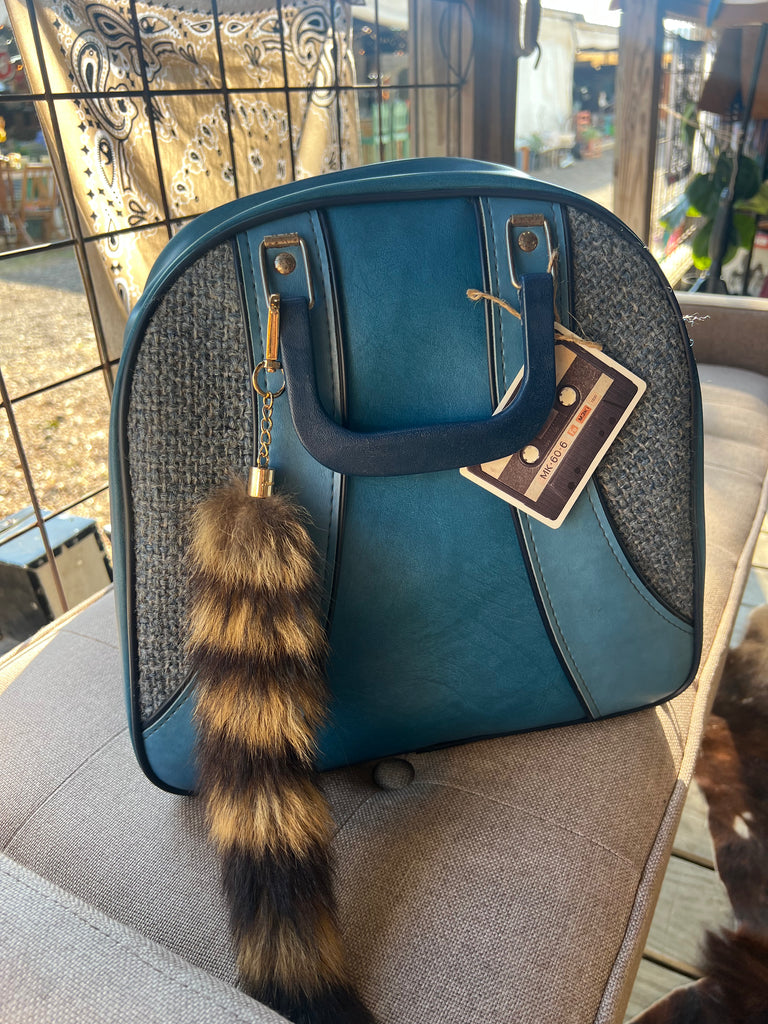 This bag is a gorgeous blue color with a textured fabric to give it even more unique character. Add some bag charms, scarf or a bandana to dress it up or keep it plain, it’s fabulous on its own.