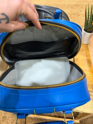 I just love this vibrant blue color! Great bag for an overnight stay, carryon bag while traveling. The best way to travel in style! Everyone will want your bag!