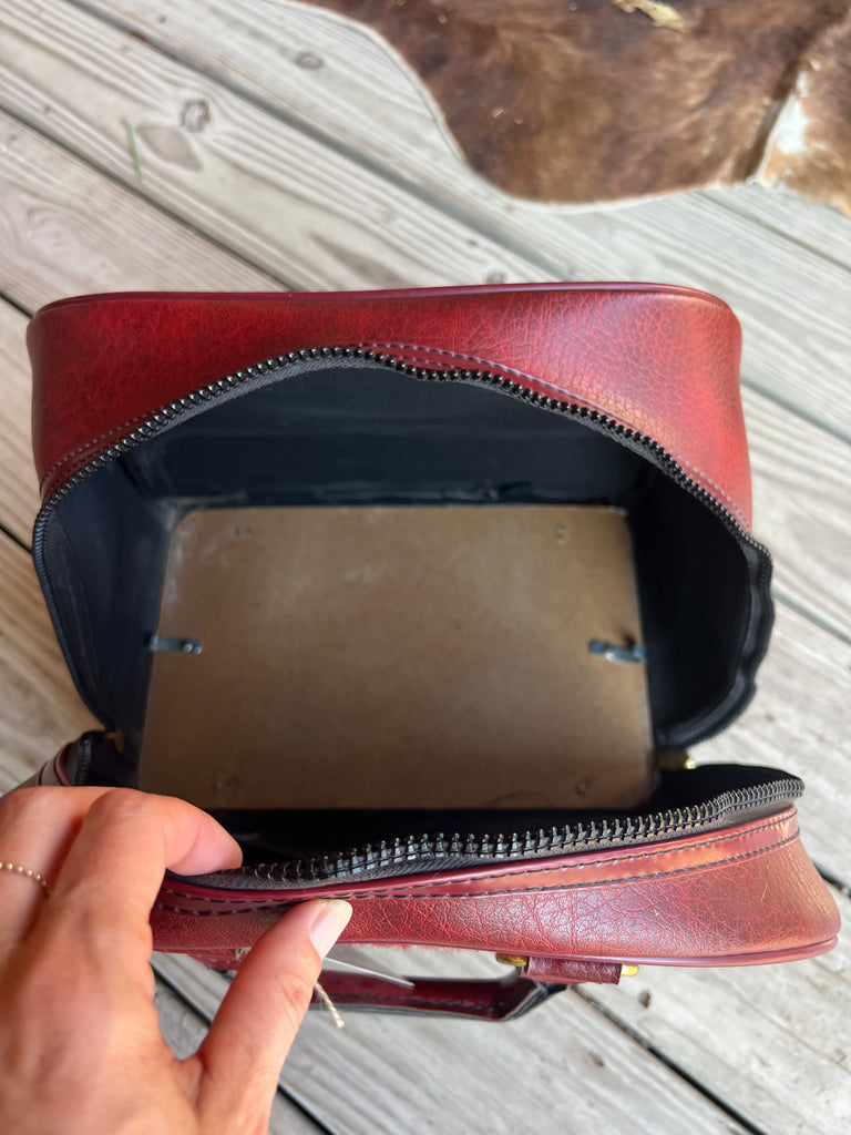 This color is fabulous! Rich burgundy color with gorgeous fabric detail to match. I just love the texture that the fabric adds to it! Add some bag charms, scarf or a bandana to dress it up or keep it plain, it’s fabulous on its